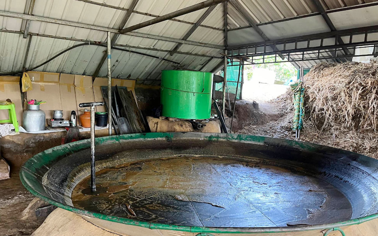 Then it’s on to the hidden gem of Irachil Para Waterfalls: a cool, secluded cascade reached by jeep and a short trek, perfect for a refreshing break and photo moment. Your local guide will walk you through the traditional jaggery-making unit in Marayoor, where you’ll see how sugarcane is transformed into local jaggery and can sample a fresh piece.